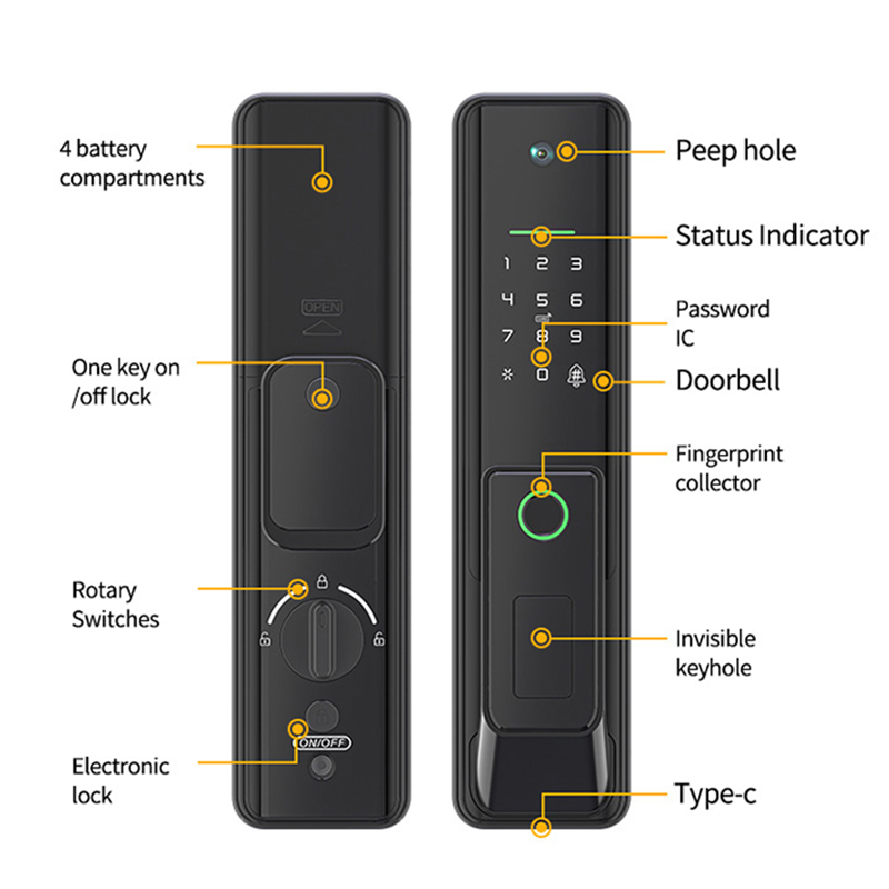• Unlocking Ways: App, Camera, Password, Fingerprint, Card, NFC or Key